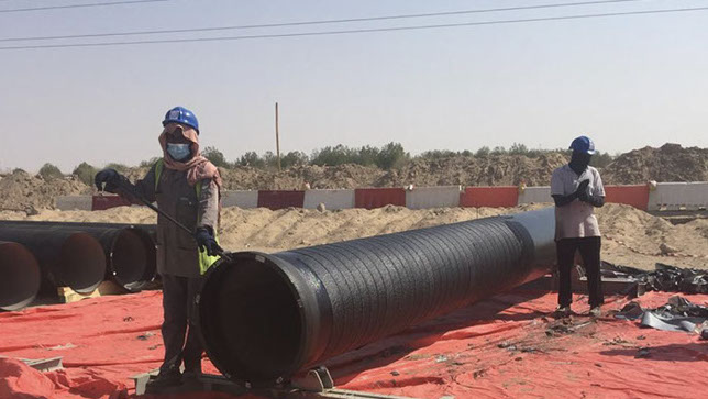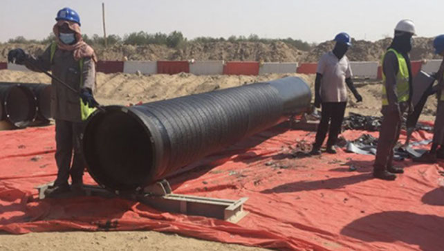 Petrolatum based mastic filler is used for filling cavities (gaps between flange plates, nuts & bolts etc.) and smoothing uneven surfaces on buried pipeline components like flanges and fittings. This reliably prevents cavities and forms a complete corrosion prevention coating. It is applied by hand or using a spatula to the surface to be coated and then petrolatum tape is applied. On top of petrolatum tape, Non-woven rockshield (made from polypropylene fibres) is applied to provide additional mechanical protection for corrosion prevention coatings on steel and cast iron pipelines, plastic pipes and plastic jacket pipes.