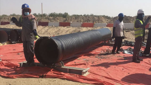 Petrolatum based mastic filler is used for filling cavities (gaps between flange plates, nuts & bolts etc.) and smoothing uneven surfaces on buried pipeline components like flanges and fittings. This reliably prevents cavities and forms a complete corrosion prevention coating. It is applied by hand or using a spatula to the surface to be coated and then petrolatum tape is applied. On top of petrolatum tape, Non-woven rockshield (made from polypropylene fibres) is applied to provide additional mechanical protection for corrosion prevention coatings on steel and cast iron pipelines, plastic pipes and plastic jacket pipes.